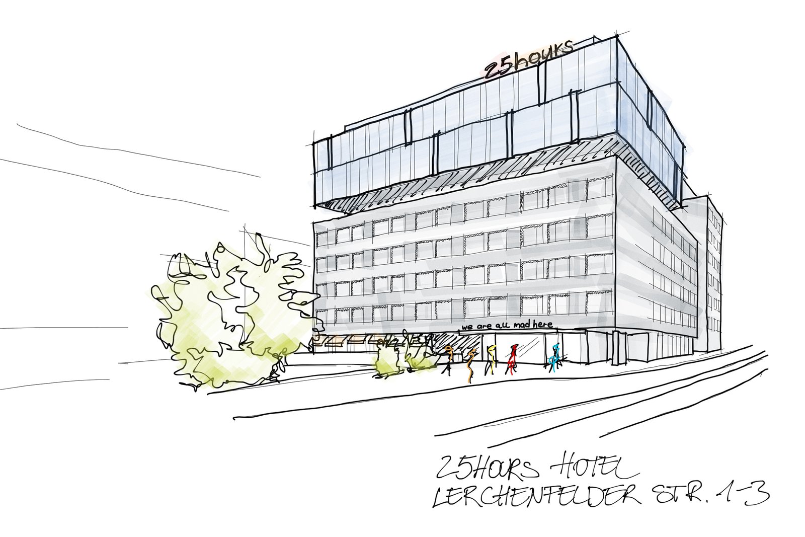 BWM Architekten realisierten als Generalplaner den Gesamtumbau und die Erweiterung eines bestehenden Studentenheims aus den 1970er-Jahren und verhalfen dem alten Gebäudeblock mit einem coolen Dachkubus und einer dramatischen schwarzen Fassade zu neuer Attraktivität. Der revitalisierte Bau wird als Designhotel der Themenhotel-Gruppe 25hours mit Standort Wien geführt.