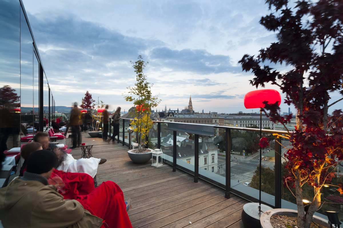 Hervorragendstes architektonisches Merkmal des neuen Hotels ist der gläserne, kubische Aufbau mit drei Dachgeschoßen, die dem Gebäude ein klares Gepräge verleihen. Die Fassade des Glaskörpers orientiert sich an der kompakten Gliederung der Bestandsfassade und bildet mit diesem einen neuen zeitgemäßen Baukörper. Hier befinden sich großzügige Hotelsuiten und -Zimmer, von denen sich eine prachtvolle Aussicht auf die umgebende Stadtlandschaft mit Parlament und den historischen Palais Trautson und Auersberg bietet. Das oberste Dachgeschoß ist mit seiner vorgelagerten breiten Terrasse als öffentliches Café auch einem breiteren Publikum zugänglich und kann mit dem Panoramalift vom Park aus direkt erreicht werden. Es hat sich seit seiner Eröffnung 2011 zu einem beliebten Treffpunkt und Hotspot sowohl für die Wiener Bevölkerung als auch für die internationalen Hotelgäste entwickelt.