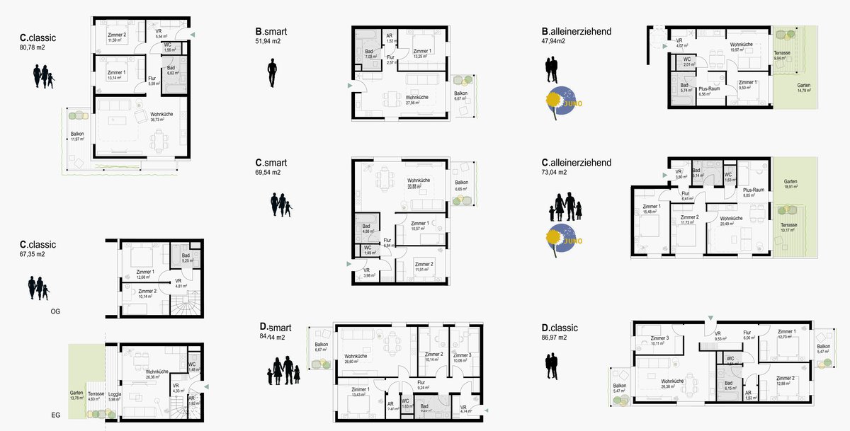 Realization concept based on the 4-pillar model (economy, social sustainability, architecture and ecology) with innovative approaches to the topic of "gender-sensitive, everyday planning", also for the further development of the SMART housing concept.