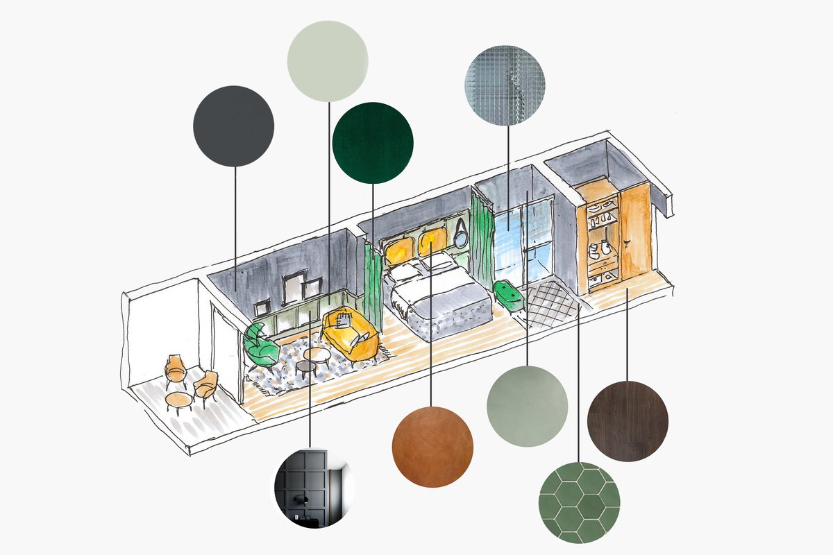 “The ‘Achensee’ rooms face the lake, meaning that they have less natural light to begin with,” says BWM architect Erich Bernard. “On top of that, they are also narrower and stretch further into the centre of the building.” For this reason, BWM Designers & Architects chose darker colours and materials to amplify the scant natural light entering these lake-view rooms. “This is a technique that the Nordic countries have been using for some time,” BWM interior designer Ales Košak explains. The sunnier, mountain-facing “Alpin” rooms are broader and less deep. BWM employed a Mediterranean technique for the interior of these rooms and used light colours.