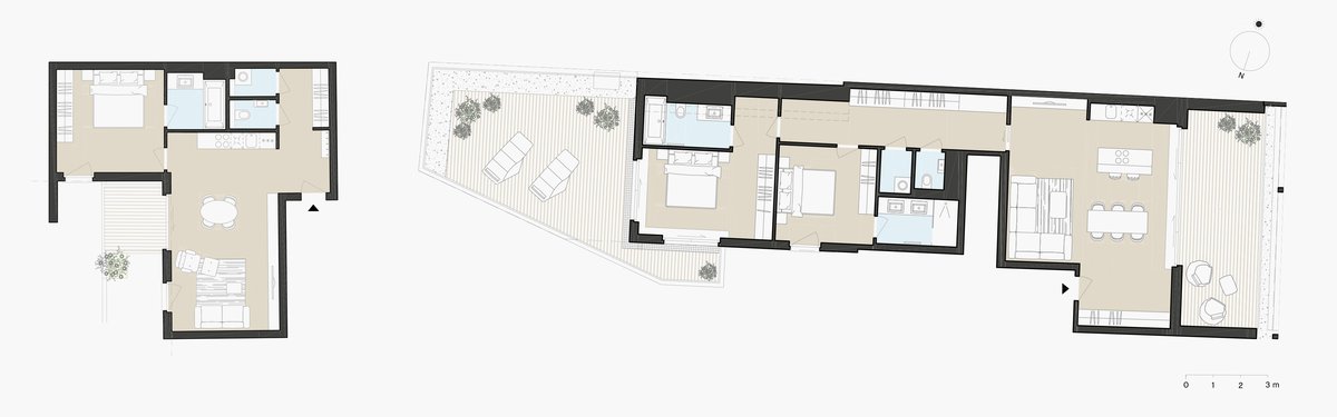m² Construction of a new seven-floor residential building including attic floor; the ±80 privately financed freehold flats range in size from 18m2 to 152m²