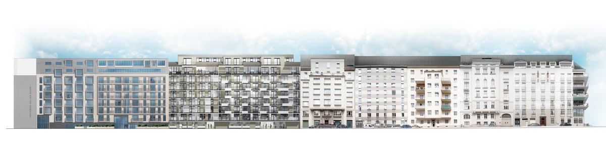 Three new buildings have replaced the former 100m-long official building at Modenapark 1–2. The south building, designed by BWM Designers & Architects, takes its inspiration from the historical surroundings. The dynamic exposed-concrete façade along the street features horizontal, three-dimensional bands that create a counterpoint to the surrounding park; climbing plants on a trellis structure provide greenery in the courtyard. The flats range in size from microlofts to family-friendly units. Residents can enjoy a magnificent, unobstructed view across Modenapark and Vienna’s roofscape.