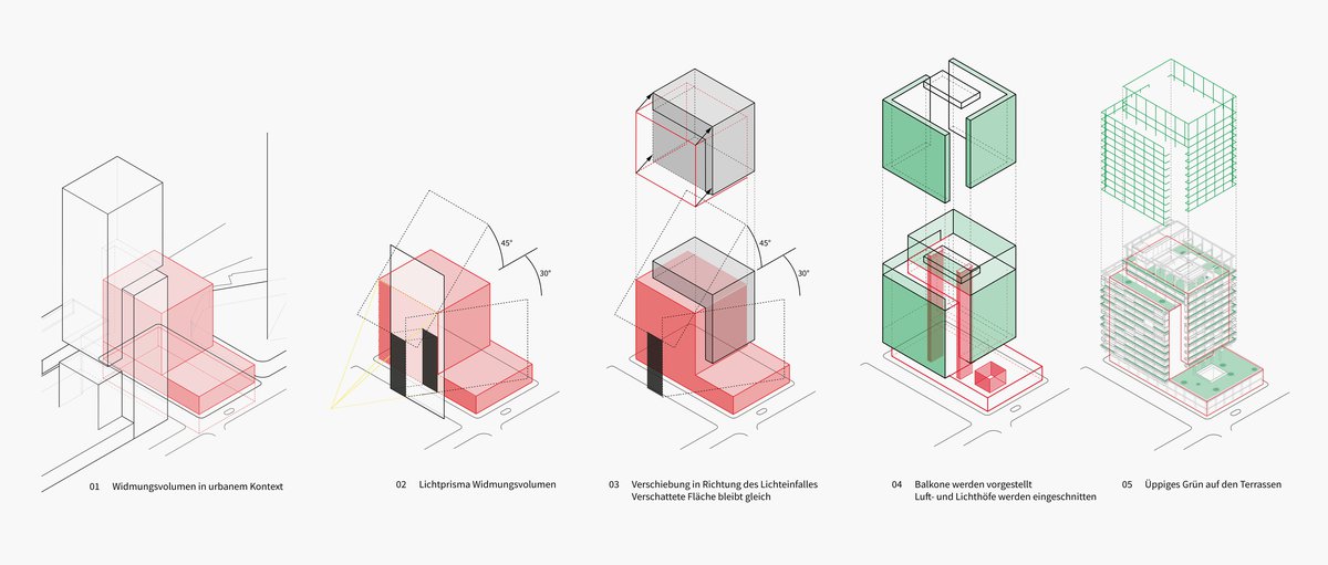 Geladener Wettbewerb für die Konzeption eines Bürogebäudes als viertes TrIIIple-Projekt, neben drei bereits entwickelten Wohnhochhäusern.