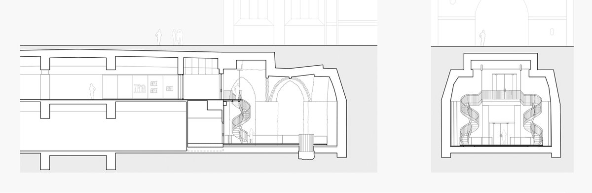 The subterranean Vergilius Chapel was rediscovered during the construction of the Vienna subway network and is one of the locations belonging to the Wien Museum. Small structural adaptations were necessary to make the well-preserved Gothic structure accessible to the general public. In the first phase, BWM planned a raised floor for the building facility system and a new design concept with an adjoining museum shop. An additional access leads down two winding staircases from the shop to the subterranean chapel.